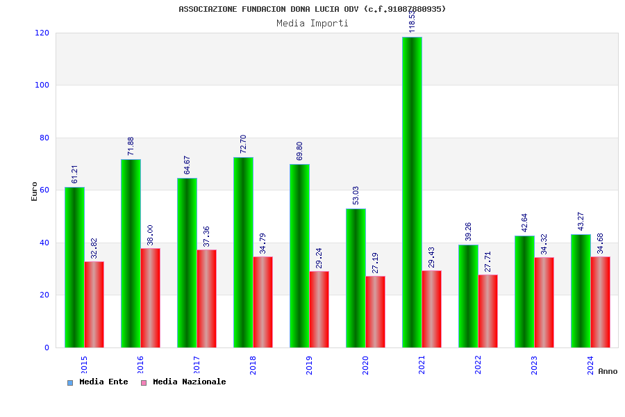 | Anno | Firme | Importi | Media | Naz. | Reg. | Prov. | Comu. |