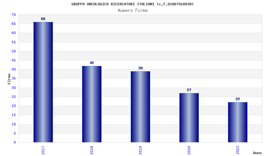 | Anno | Firme | Importi | Media | Naz. | Reg. | Prov. | Comu. |