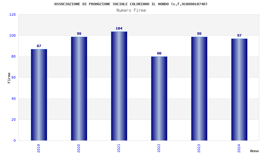 | Anno | Firme | Importi | Media | Naz. | Reg. | Prov. | Comu. |