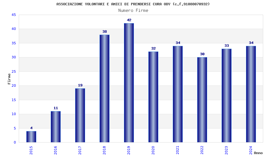 | Anno | Firme | Importi | Media | Naz. | Reg. | Prov. | Comu. |