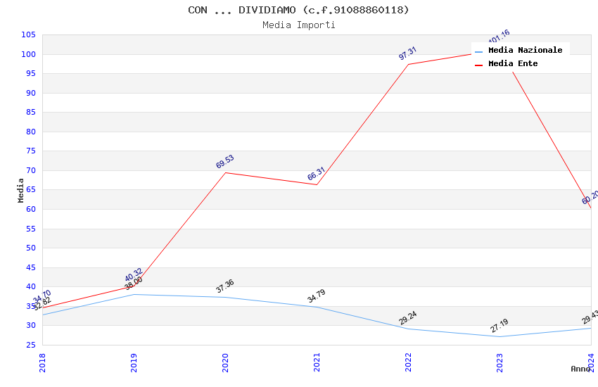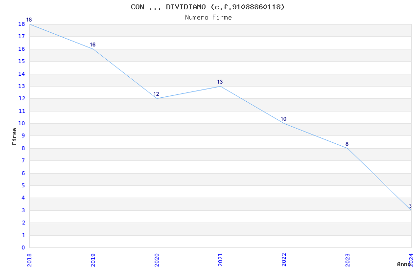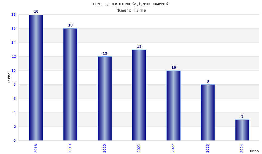 | Anno | Firme | Importi | Media | Naz. | Reg. | Prov. | Comu. |