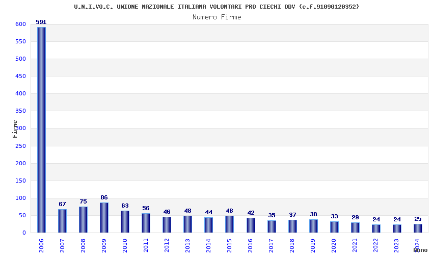 | Anno | Firme | Importi | Media | Naz. | Reg. | Prov. | Comu. |