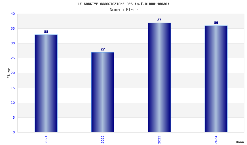 | Anno | Firme | Importi | Media | Naz. | Reg. | Prov. | Comu. |