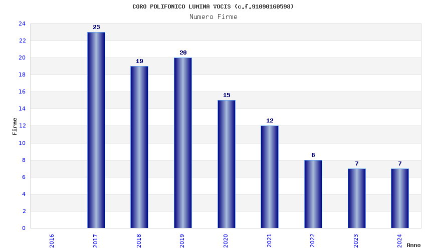 | Anno | Firme | Importi | Media | Naz. | Reg. | Prov. | Comu. |