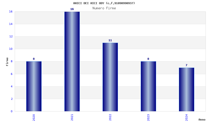 | Anno | Firme | Importi | Media | Naz. | Reg. | Prov. | Comu. |