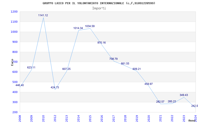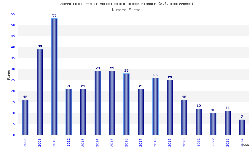 | Anno | Firme | Importi | Media | Naz. | Reg. | Prov. | Comu. |
