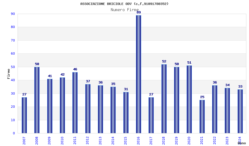 | 2016 | 89 | 2.611,04 | 29,34 | 19.034 | 1.653 | 223 | 85 |
