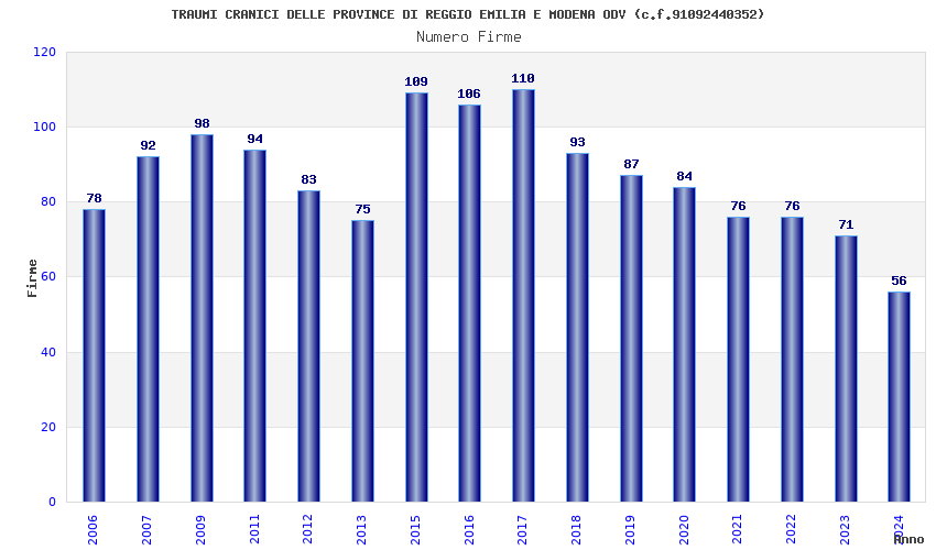 | 2017 | 110 | 2.465,84 | 22,42 | 20.324 | 1.761 | 231 | 15 |