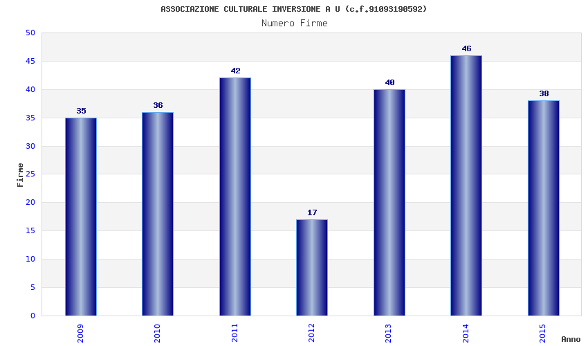 | Anno | Firme | Importi | Media | Naz. | Reg. | Prov. | Comu. |