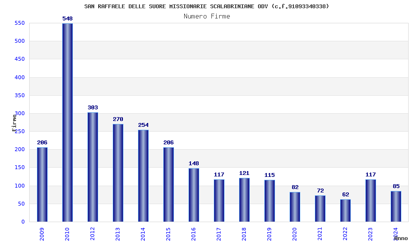 | Anno | Firme | Importi | Media | Naz. | Reg. | Prov. | Comu. |