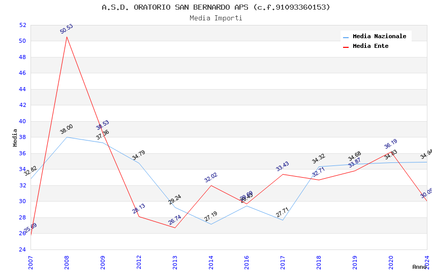 | Anno | Firme | Importi | Media | Naz. | Reg. | Prov. | Comu. |