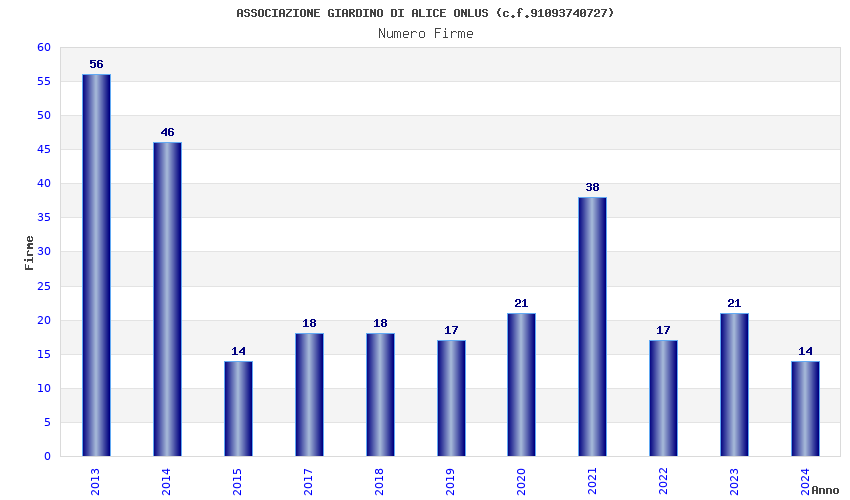 | Anno | Firme | Importi | Media | Naz. | Reg. | Prov. | Comu. |
