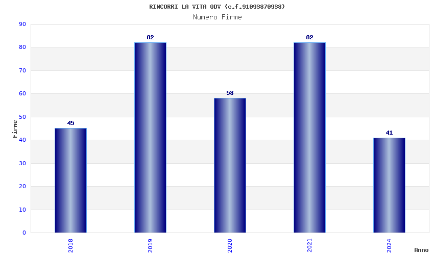 | Anno | Firme | Importi | Media | Naz. | Reg. | Prov. | Comu. |