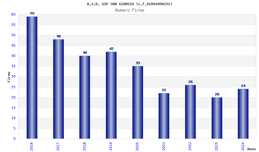 | Anno | Firme | Importi | Media | Naz. | Reg. | Prov. | Comu. |