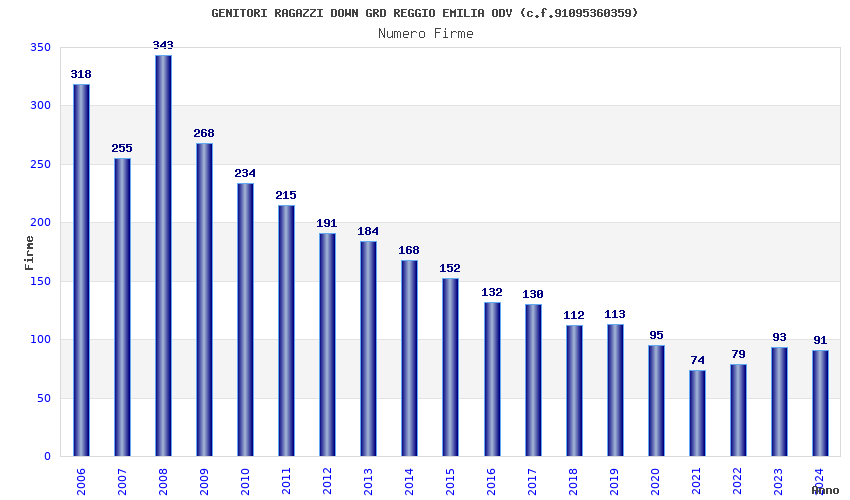 | Anno | Firme | Importi | Media | Naz. | Reg. | Prov. | Comu. |