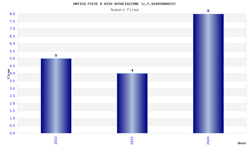 | Anno | Firme | Importi | Media | Naz. | Reg. | Prov. | Comu. |