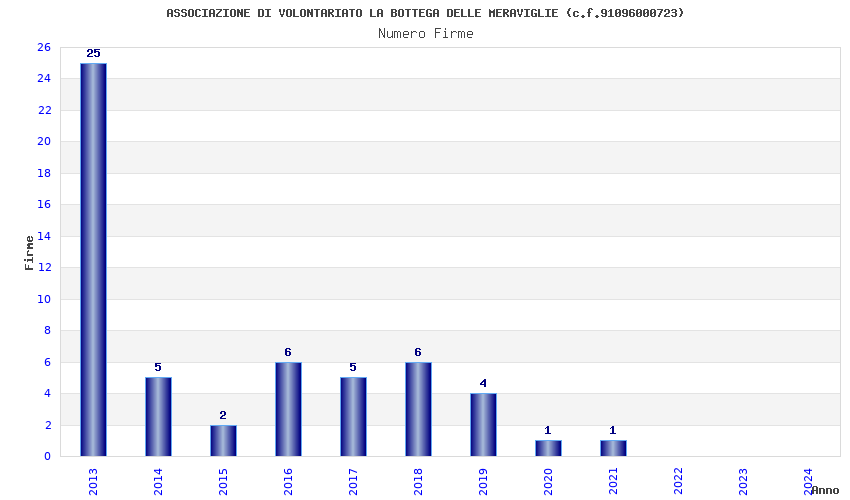 | Anno | Firme | Importi | Media | Naz. | Reg. | Prov. | Comu. |