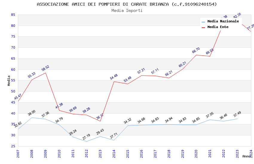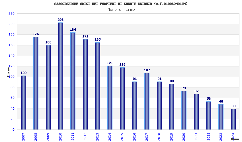 | Anno | Firme | Importi | Media | Naz. | Reg. | Prov. | Comu. |
