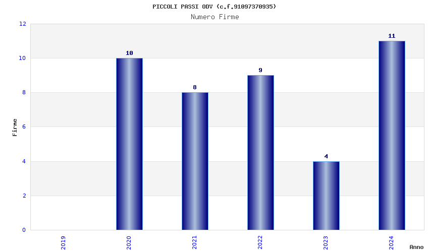 | Anno | Firme | Importi | Media | Naz. | Reg. | Prov. | Comu. |