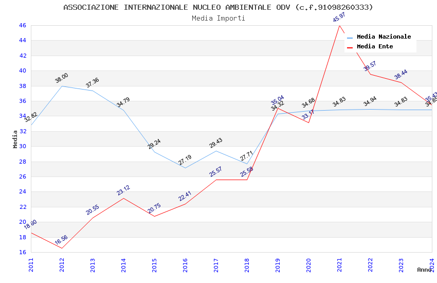 | Anno | Firme | Importi | Media | Naz. | Reg. | Prov. | Comu. |
