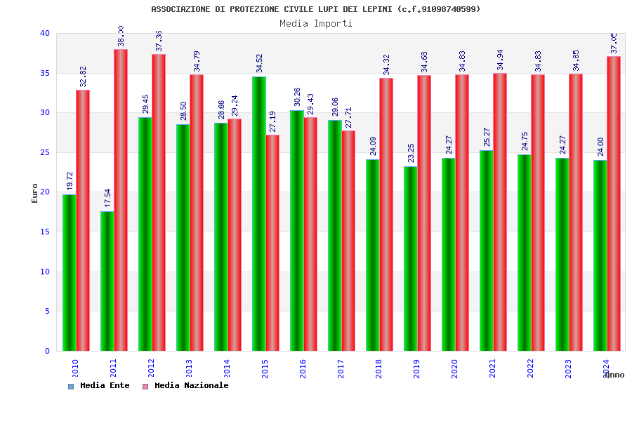 | Anno | Firme | Importi | Media | Naz. | Reg. | Prov. | Comu. |