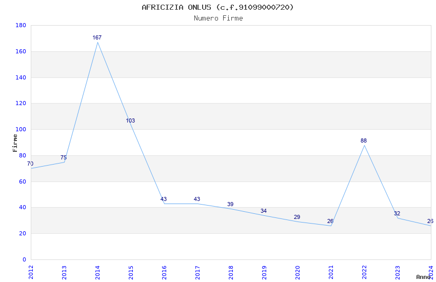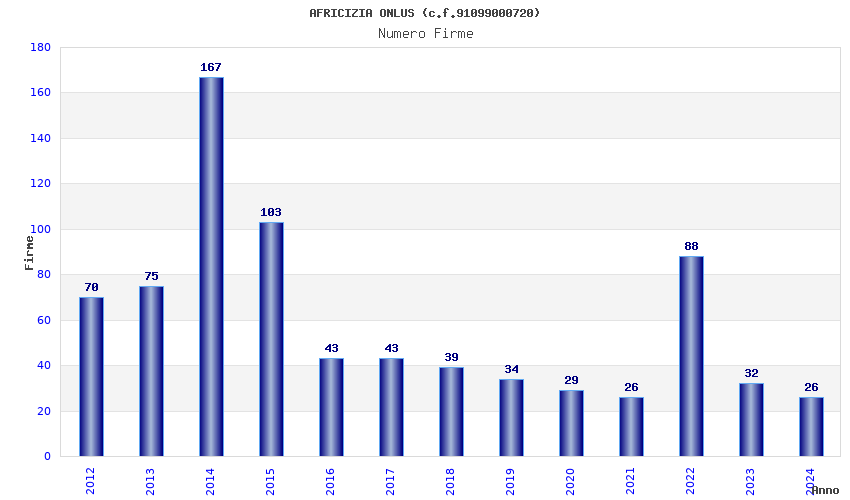 | Anno | Firme | Importi | Media | Naz. | Reg. | Prov. | Comu. |