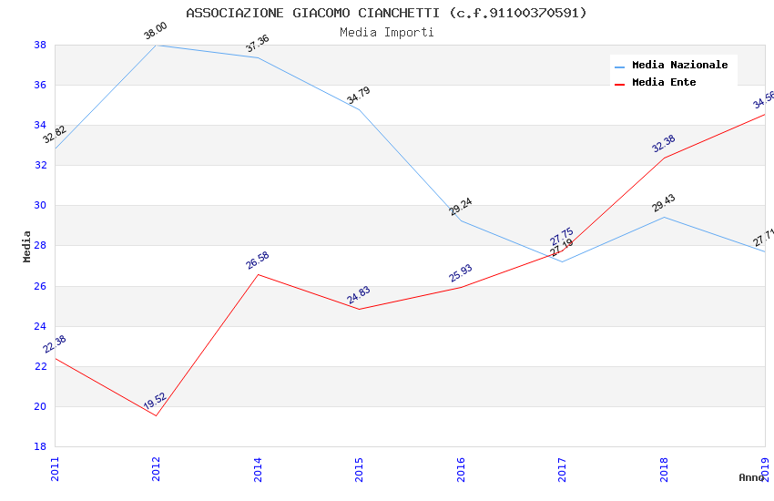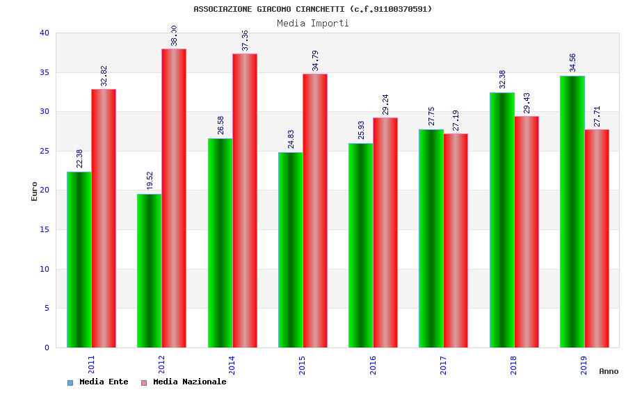 | Anno | Firme | Importi | Media | Naz. | Reg. | Prov. | Comu. |