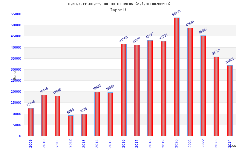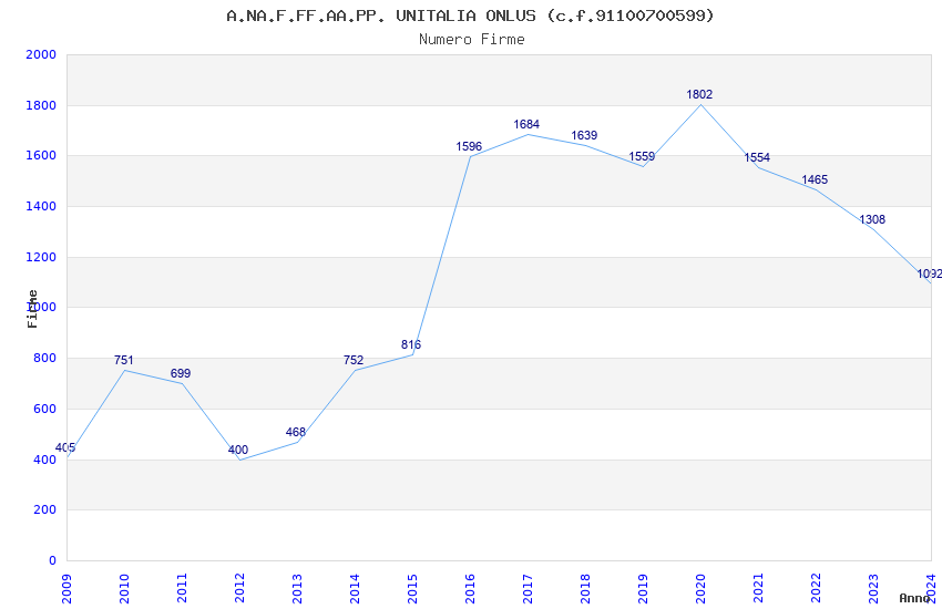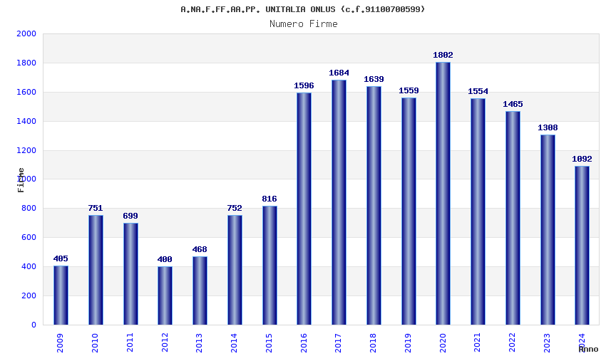 | Anno | Firme | Importi | Media | Naz. | Reg. | Prov. | Comu. |
