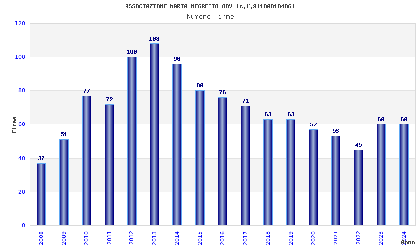 | Anno | Firme | Importi | Media | Naz. | Reg. | Prov. | Comu. |