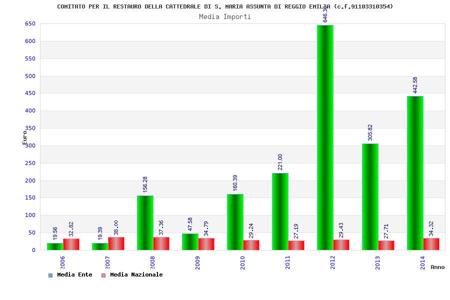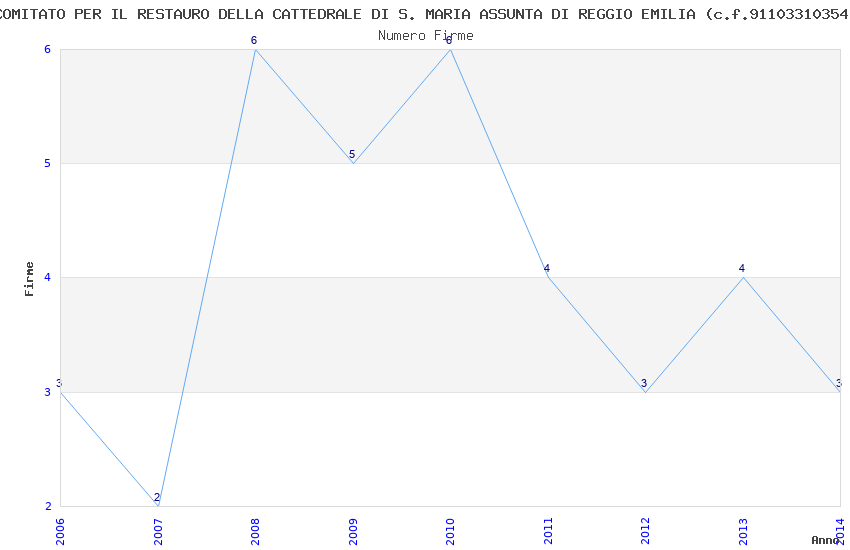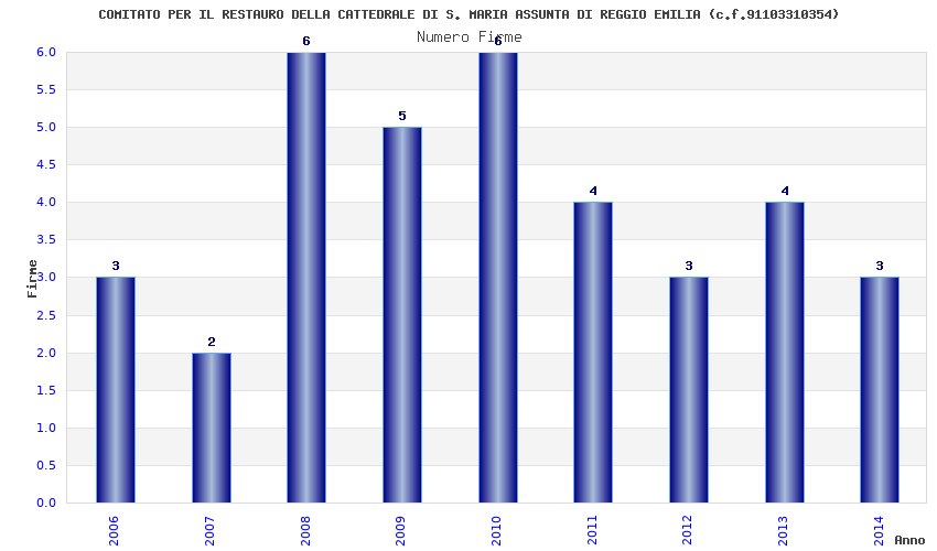 | Anno | Firme | Importi | Media | Naz. | Reg. | Prov. | Comu. |