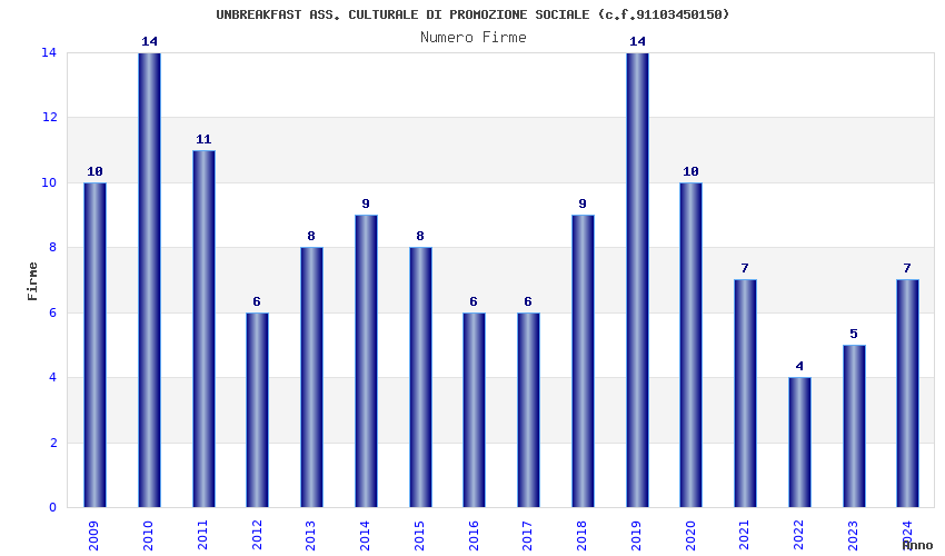 | Anno | Firme | Importi | Media | Naz. | Reg. | Prov. | Comu. |
