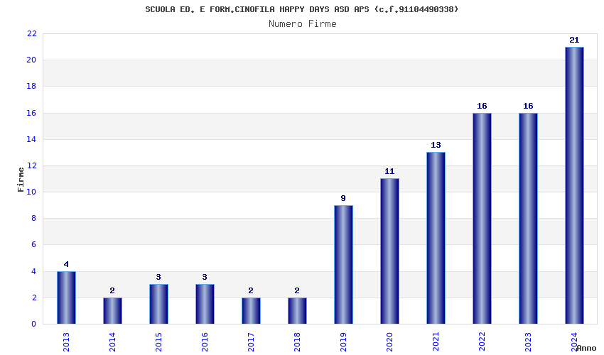 | 2021 | 13 | 232,80 | 17,91 | 57.210 | 5.226 | 401 | 7 |
