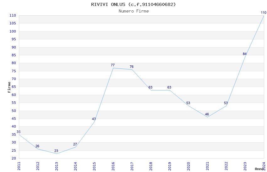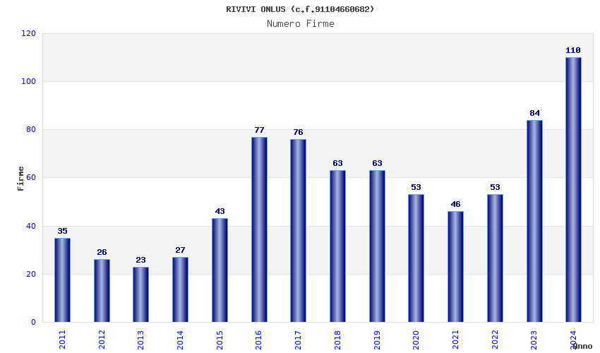 | Anno | Firme | Importi | Media | Naz. | Reg. | Prov. | Comu. |