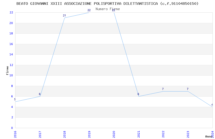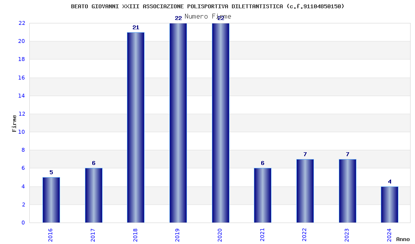 | Anno | Firme | Importi | Media | Naz. | Reg. | Prov. | Comu. |