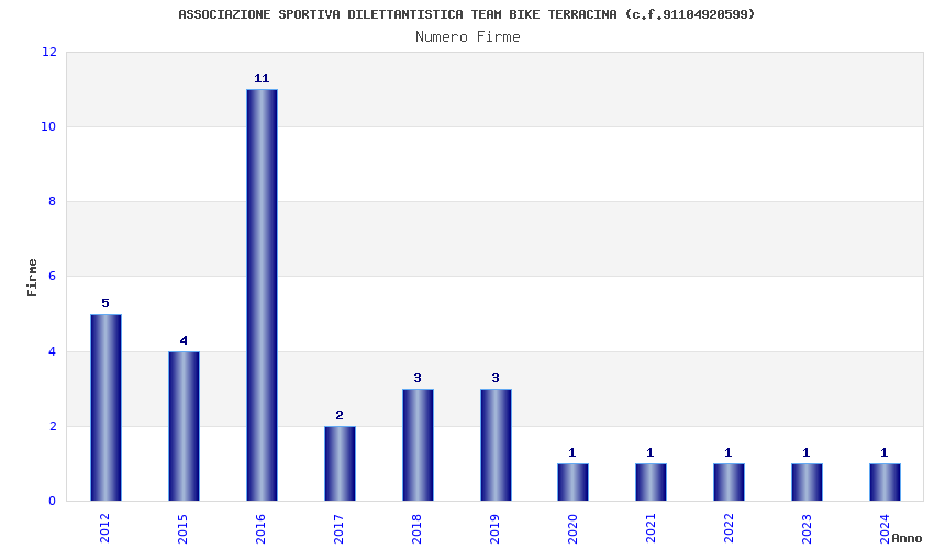 | Anno | Firme | Importi | Media | Naz. | Reg. | Prov. | Comu. |