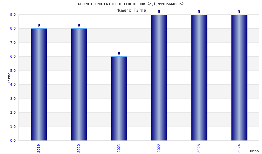 | Anno | Firme | Importi | Media | Naz. | Reg. | Prov. | Comu. |
