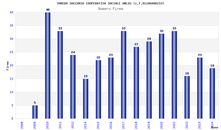 | Anno | Firme | Importi | Media | Naz. | Reg. | Prov. | Comu. |