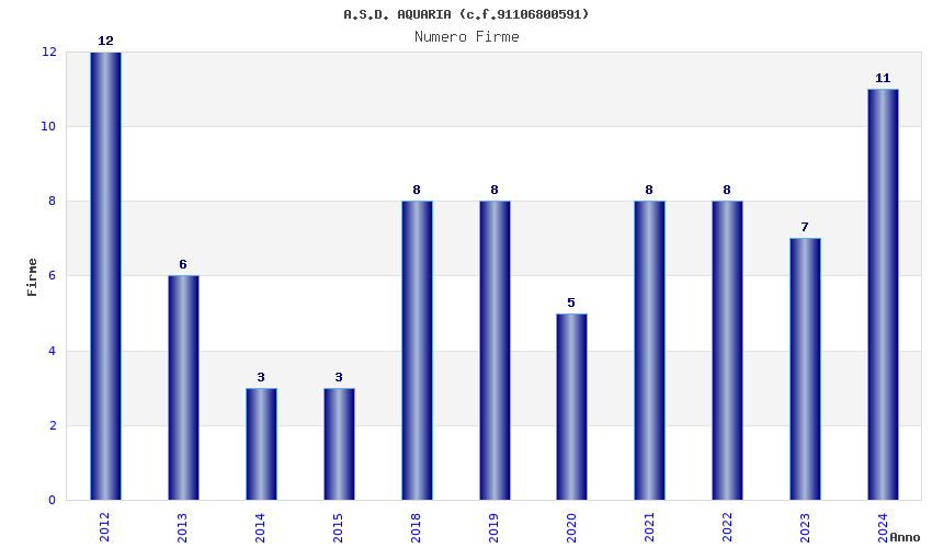 | Anno | Firme | Importi | Media | Naz. | Reg. | Prov. | Comu. |