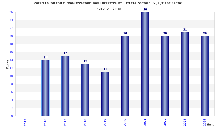 | Anno | Firme | Importi | Media | Naz. | Reg. | Prov. | Comu. |