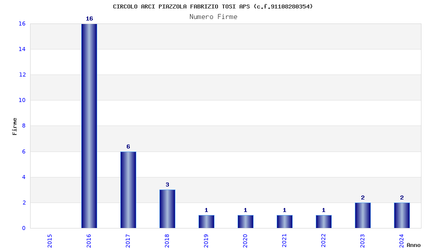 | Anno | Firme | Importi | Media | Naz. | Reg. | Prov. | Comu. |
