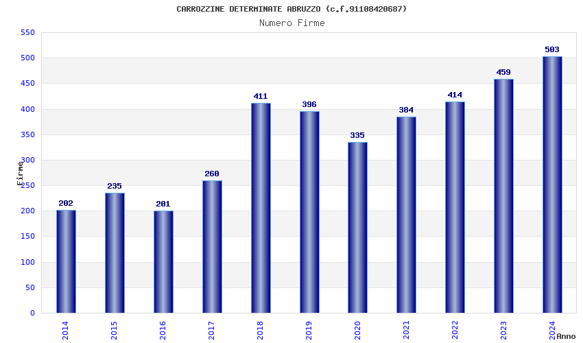 | Anno | Firme | Importi | Media | Naz. | Reg. | Prov. | Comu. |