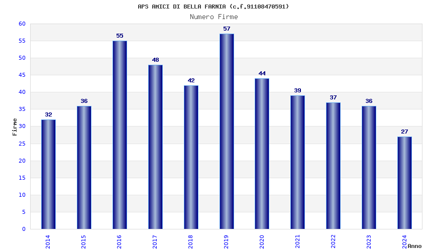 | Anno | Firme | Importi | Media | Naz. | Reg. | Prov. | Comu. |