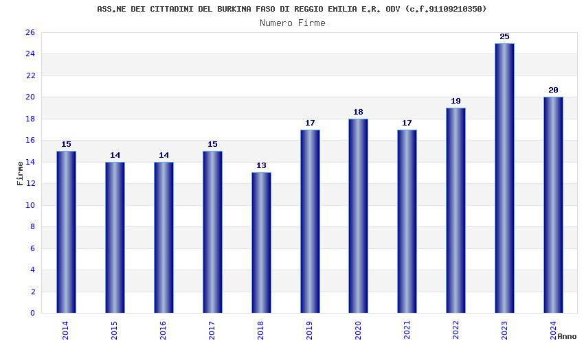 | Anno | Firme | Importi | Media | Naz. | Reg. | Prov. | Comu. |