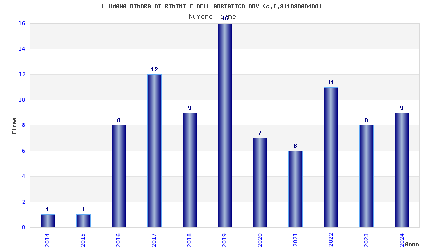 | Anno | Firme | Importi | Media | Naz. | Reg. | Prov. | Comu. |
