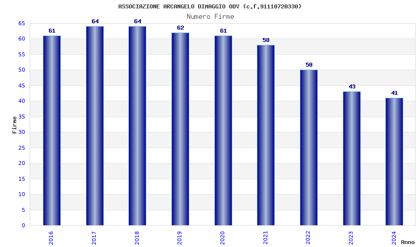 | Anno | Firme | Importi | Media | Naz. | Reg. | Prov. | Comu. |