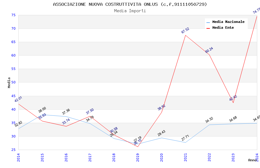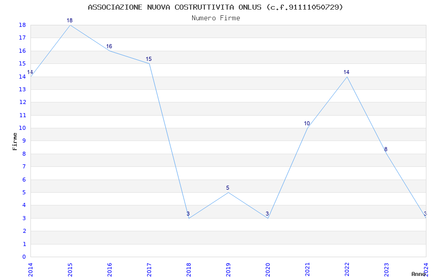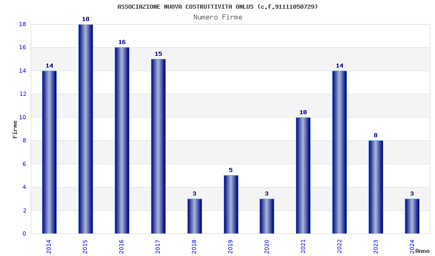 | Anno | Firme | Importi | Media | Naz. | Reg. | Prov. | Comu. |