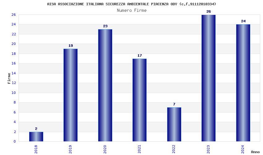 | Anno | Firme | Importi | Media | Naz. | Reg. | Prov. | Comu. |