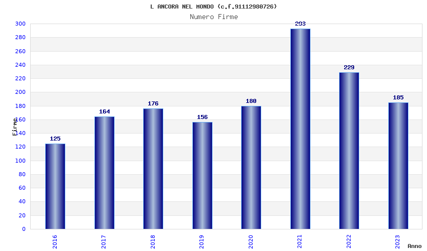 | Anno | Firme | Importi | Media | Naz. | Reg. | Prov. | Comu. |