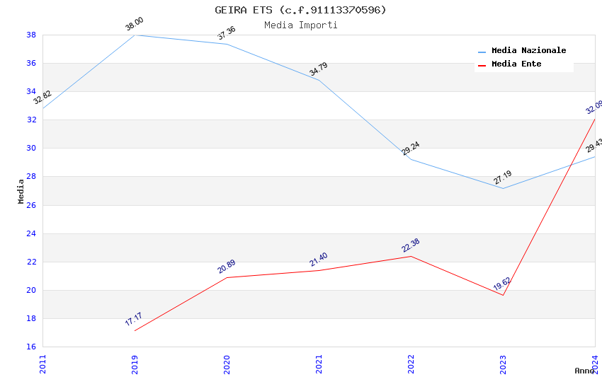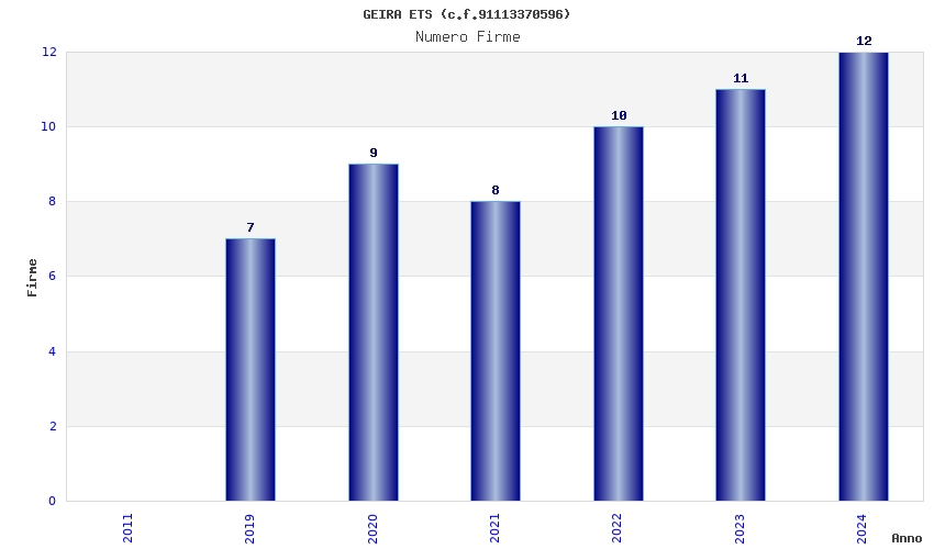 | Anno | Firme | Importi | Media | Naz. | Reg. | Prov. | Comu. |