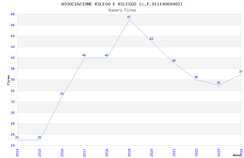 | 2024 | 37 | 1.364,97 | 36,89 | 31.310 | 2.707 | 149 | 5 |